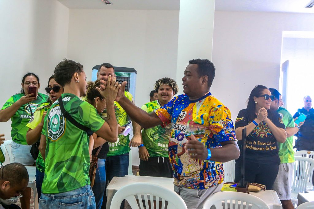 Mestre Romero e os integrantes da Malandros do Morro, do bairro da Torre, comemoraram o bicampeonato. Eles entraram na avenida esse ano com o tema ‘Comadre Fulorzinha’. “Satisfação muito grande. Muito agradecido ao bairro da Torre por esse bicampeonato”, disse Mestre Romero.