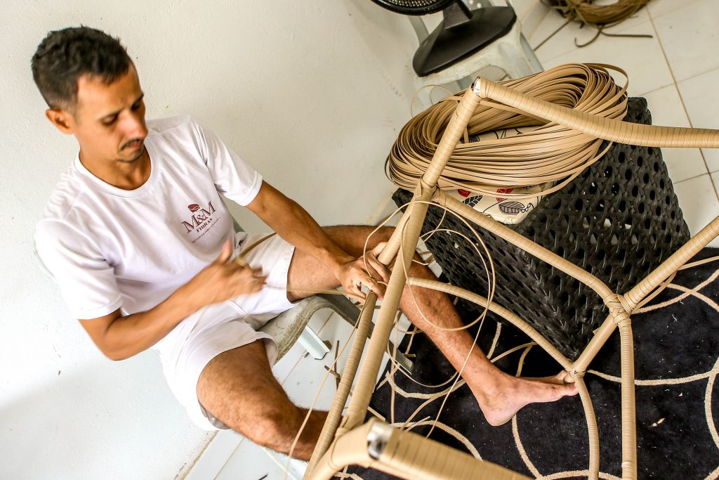 Crescimento – O empreendedor Alysson Dutra produz e reforma móveis em fibra sintética, como cadeiras, sofás e mesas, há mais de 10 anos. Ele começou trabalhando como funcionário de uma empresa, mas há três anos resolveu desenvolver a atividade por conta própria. No final deste ano, Alysson descobriu o programa ‘Empreende Aí JP’, desenvolvido pela Sala do Empreendedor, e conseguiu ampliar sua visão de negócios. Agora, ele planeja expandir a atividade e realizar mudanças na identidade visual, comprar insumos e investir nas redes sociais.